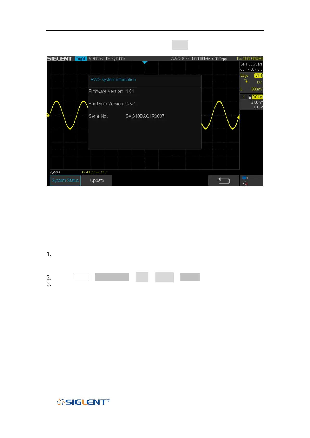 Press Utility →NextPage4/4→ AWG →System →Update.