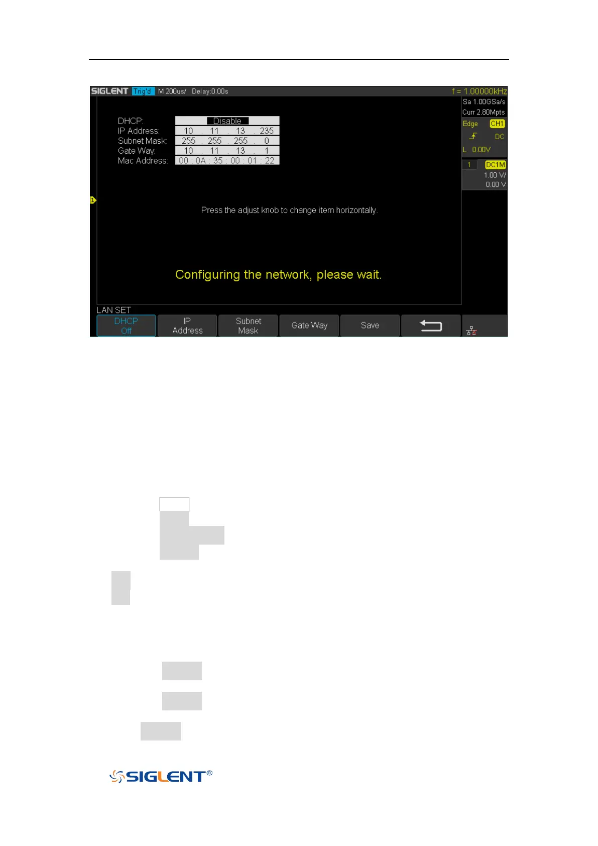 Manual Scan: press this softkey, the oscilloscope will search the network