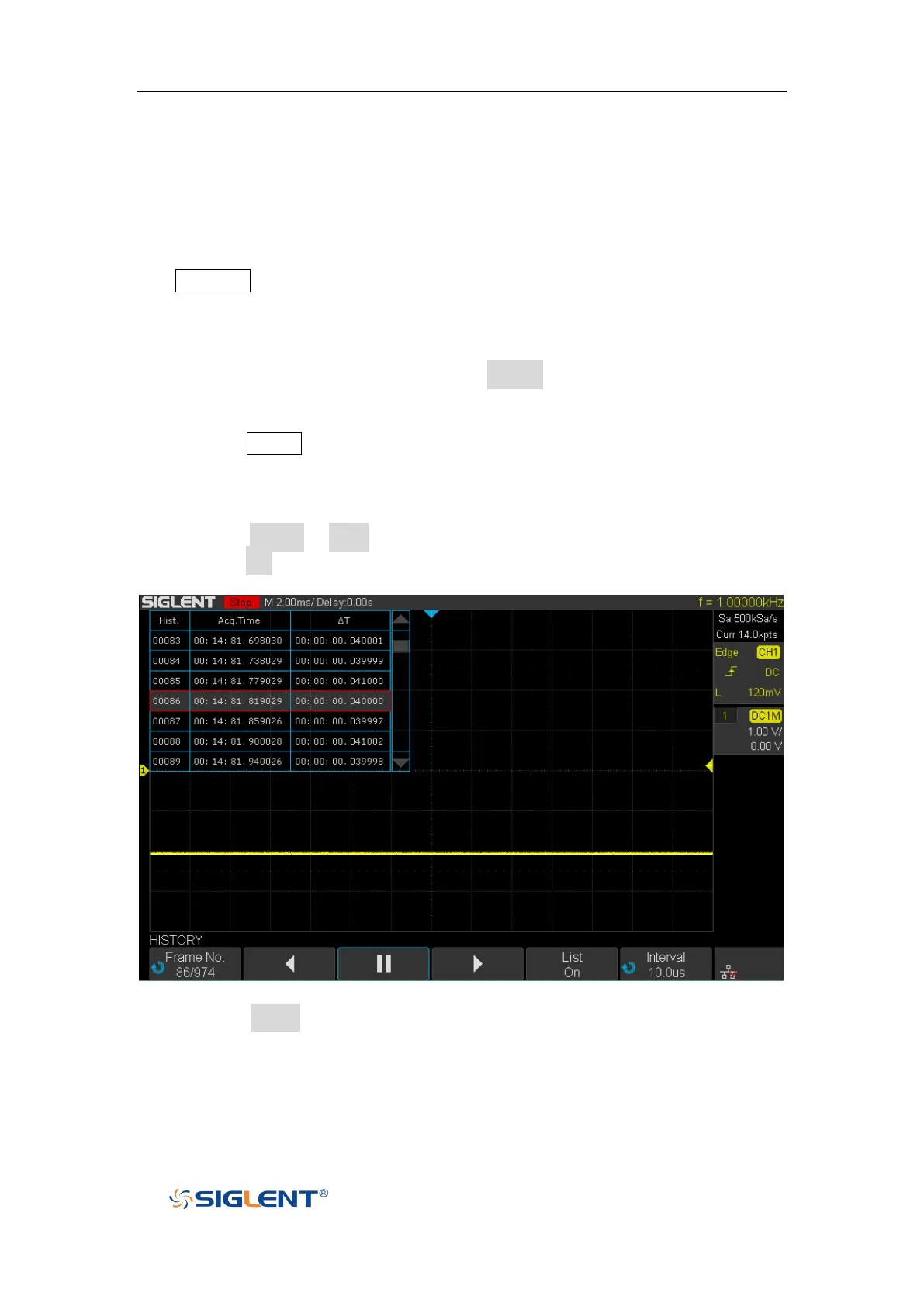 To use the History function, the HORIZONTAL Format must be set to YT.