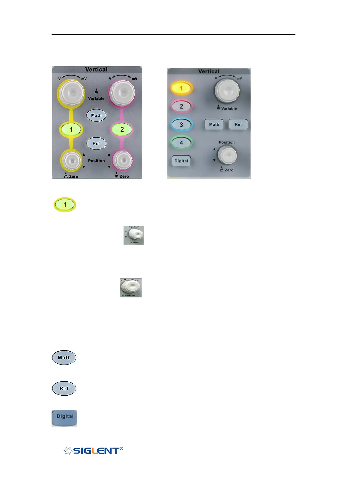 Vertical Variable Knob : adjust the vertical scale of the current channel.