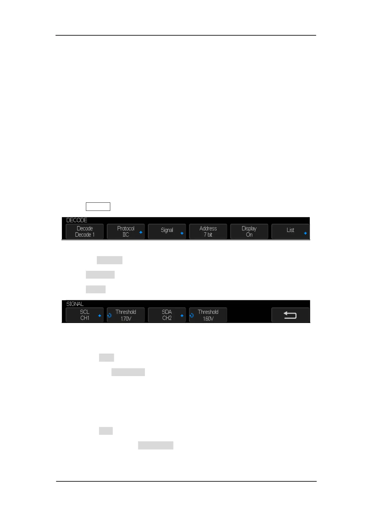 a. Press SCL softkey to select the channel that is connected to the IIC clock signal.