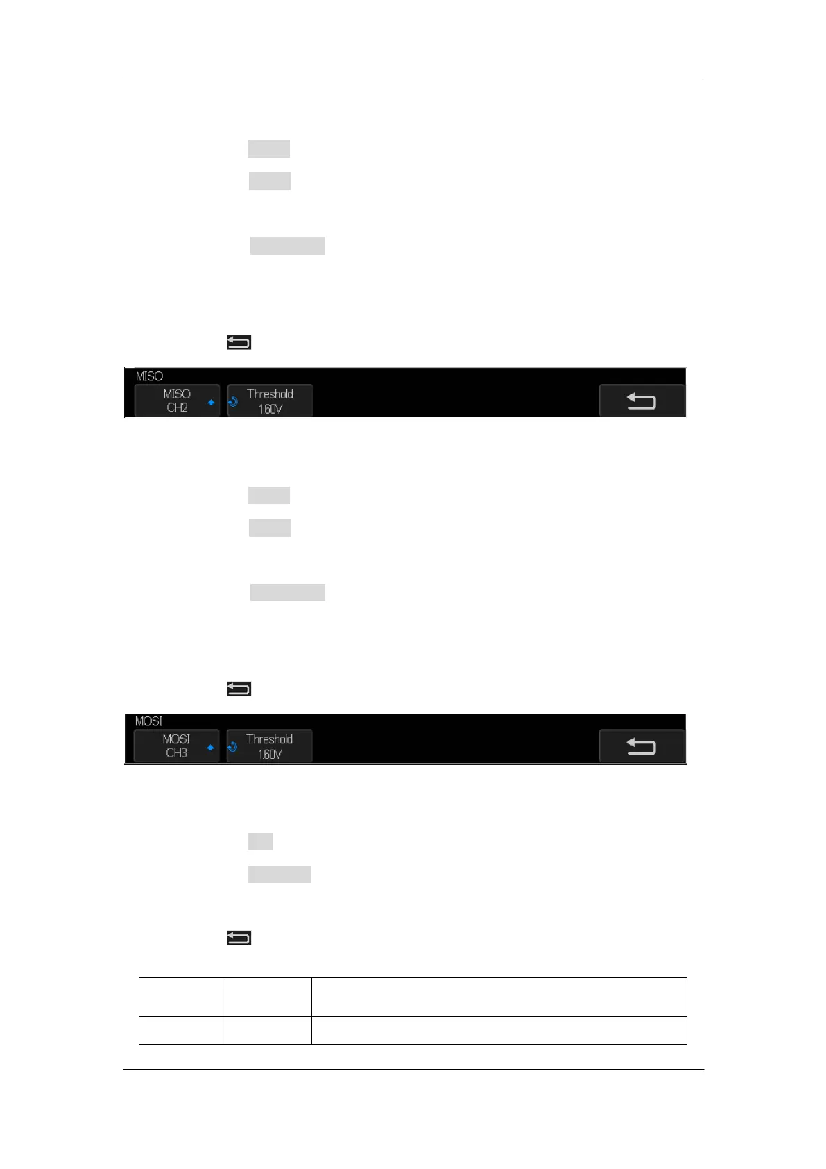 b. Press the MISO softkey to select the channel that is connected to the SPI MISO