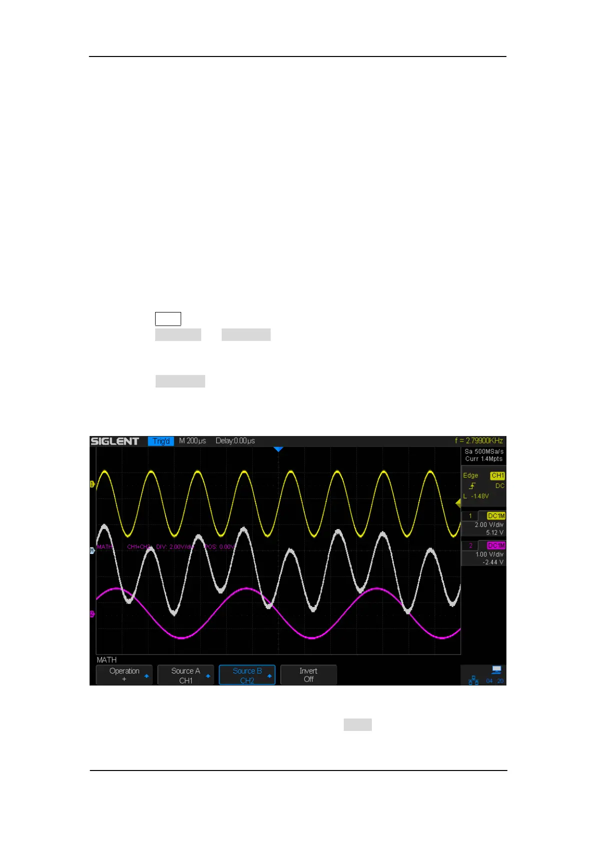 SDS2000X supports standard math operations (addition, subtraction, multiplication,