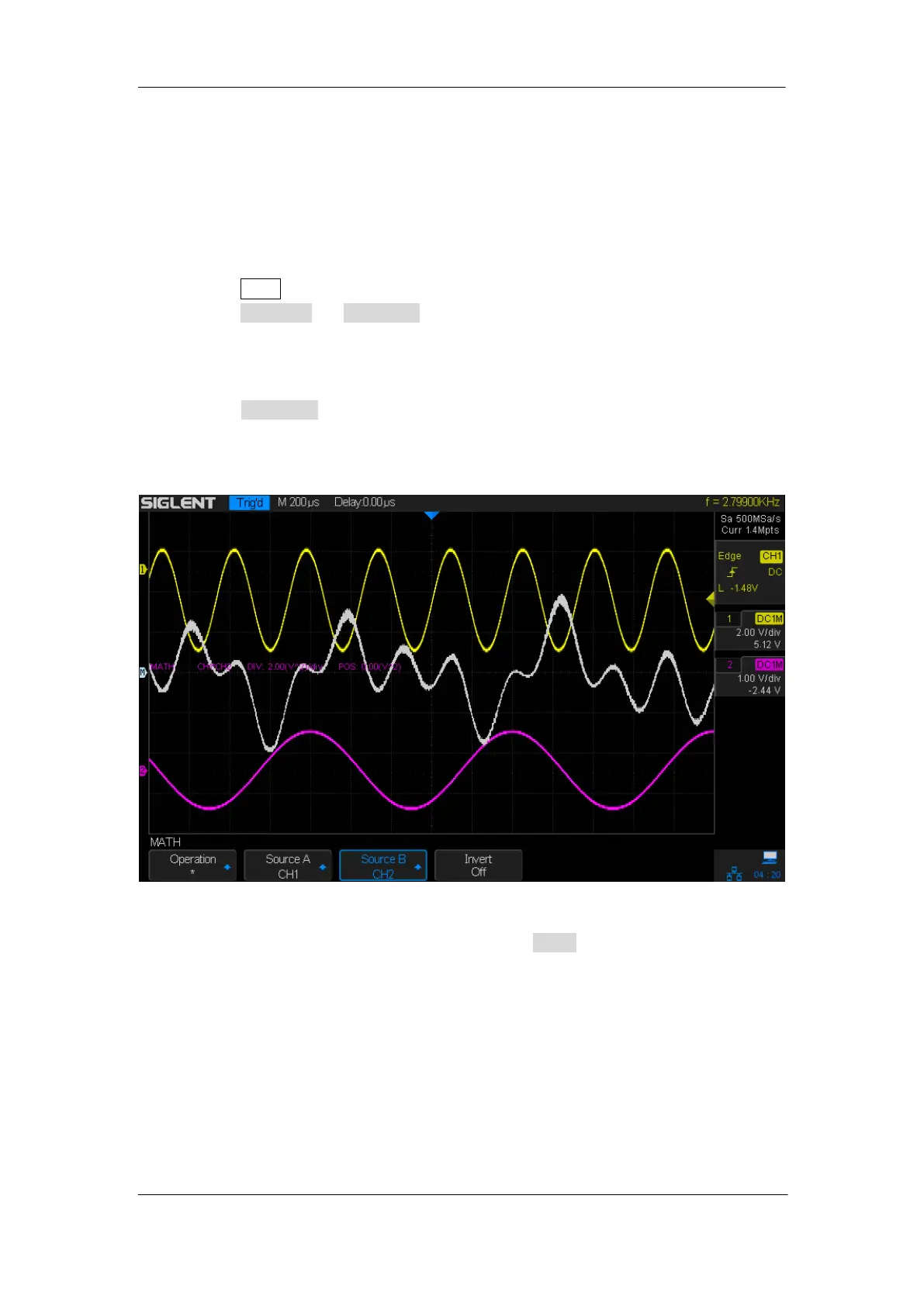 1. Press the Math button on the front panel to enter the MATH function menu.