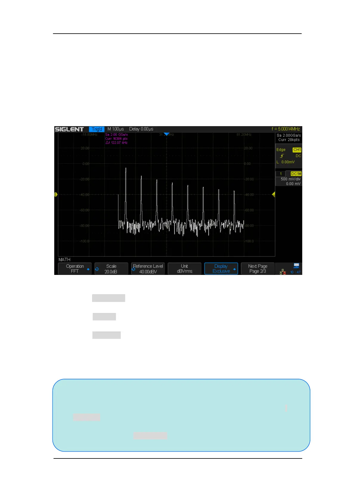 FFT waveform components. To reduce the DC components, set the Channel