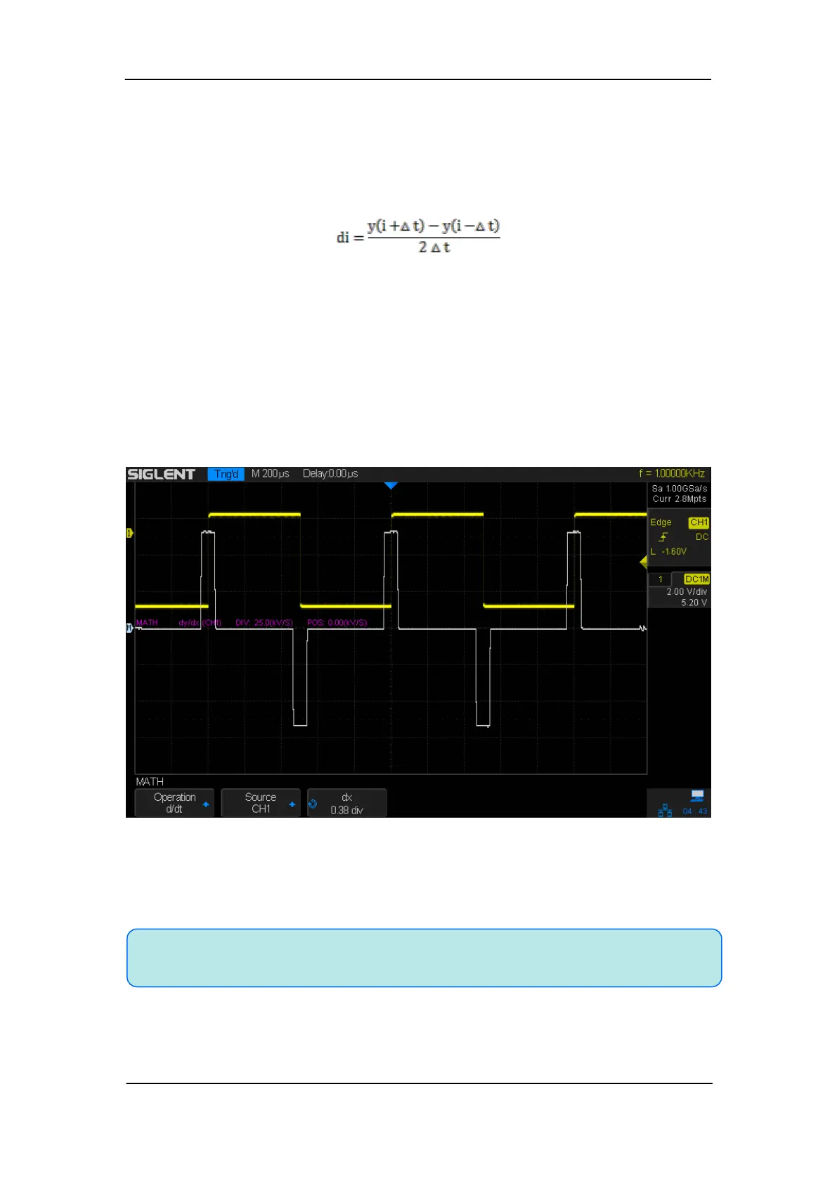 The dx option under d/dt math function operation menu shows the point-to-point time