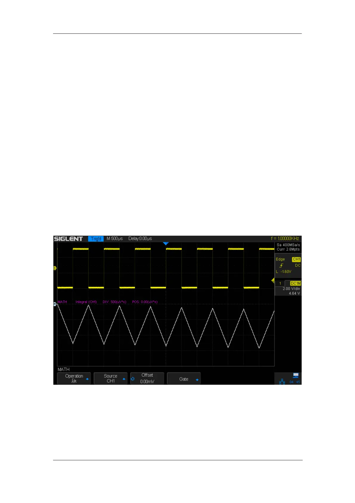 The integrate operator provides an Offset softkey that lets you enter a DC offset