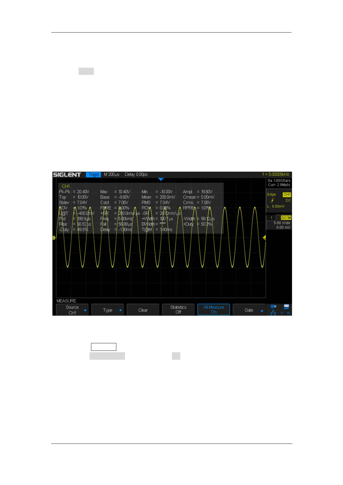 1. Press the Measure button on the front panel to enter the MEASURE function menu.
