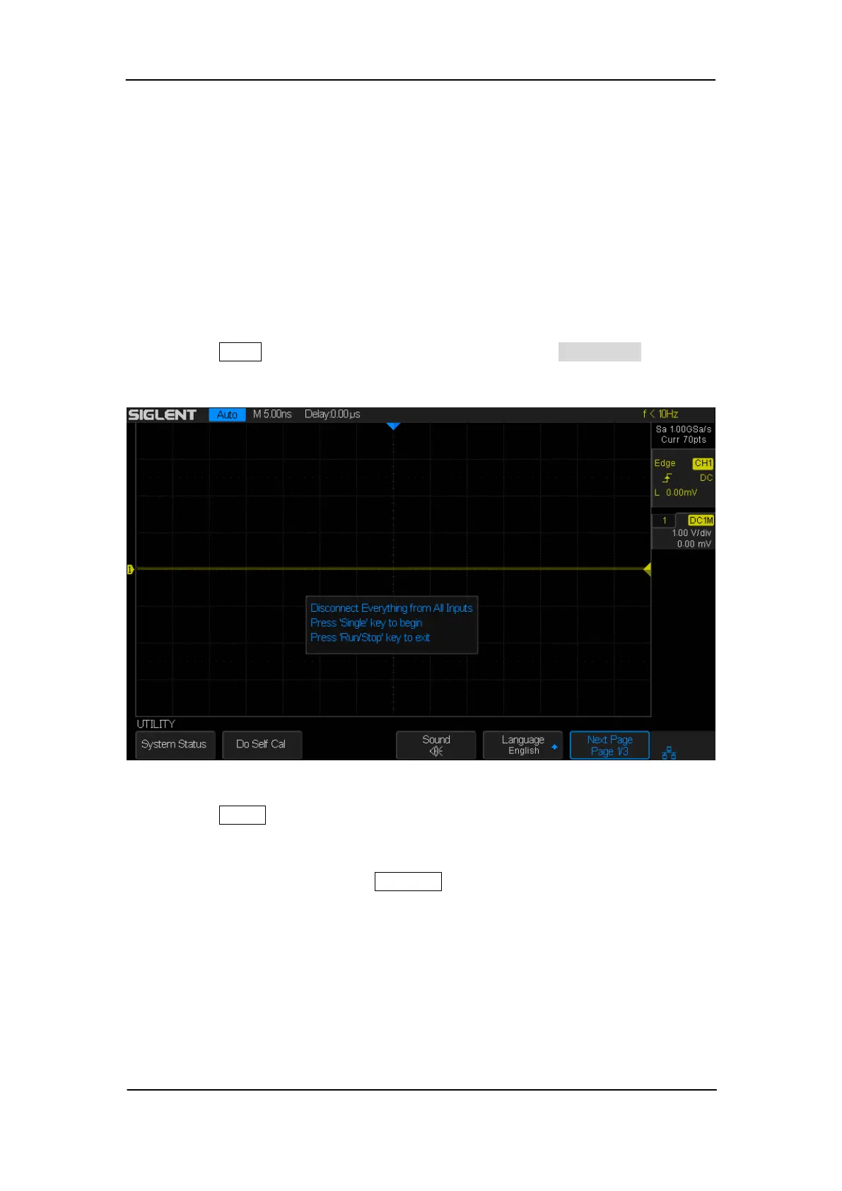 2. Press the Utility button on the front panel, and then press the Do Self Cal softkey,