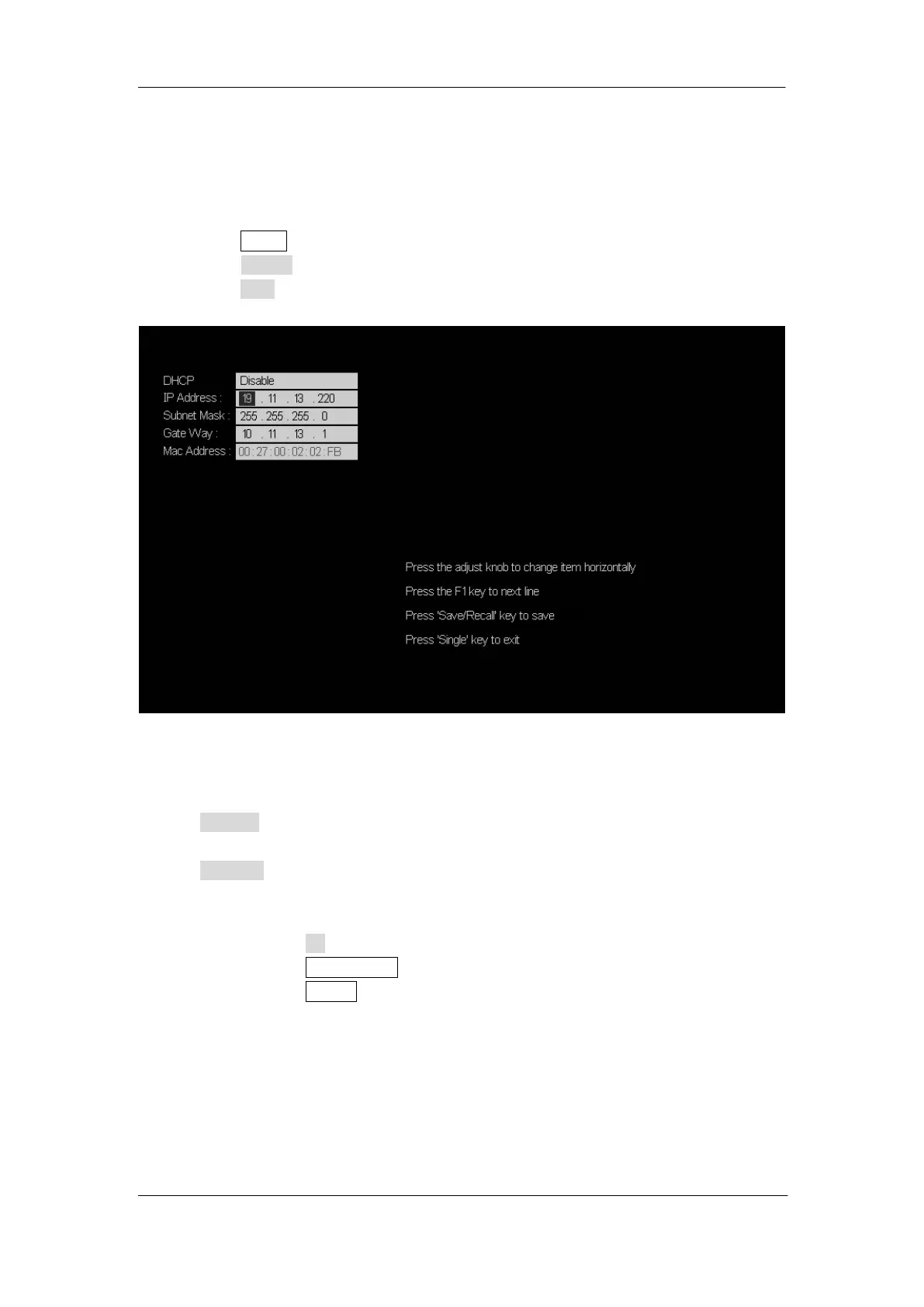 5. Press the F1 softkey (the first softkey below the screen) continually to go to the DHCP