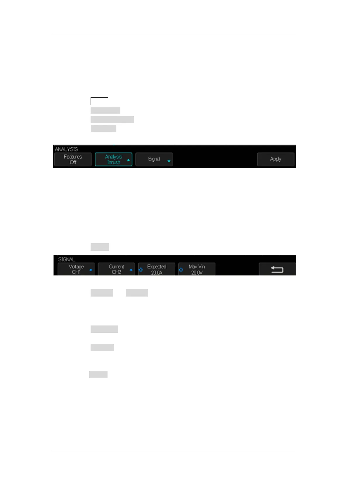 4. Press the Analysis softkey, and then turn the universal knob to select Inrush and