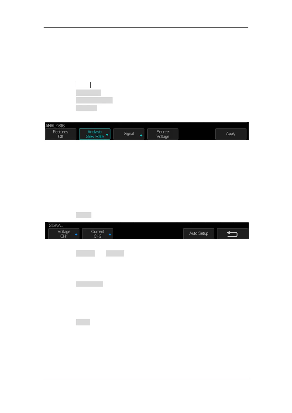 4. Press the Analysis softkey, and then turn the universal knob to select Slew Rate and