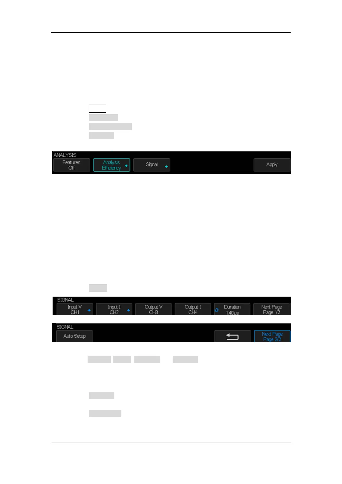4. Press the Analysis softkey, and then turn the universal knob to select Efficiency and
