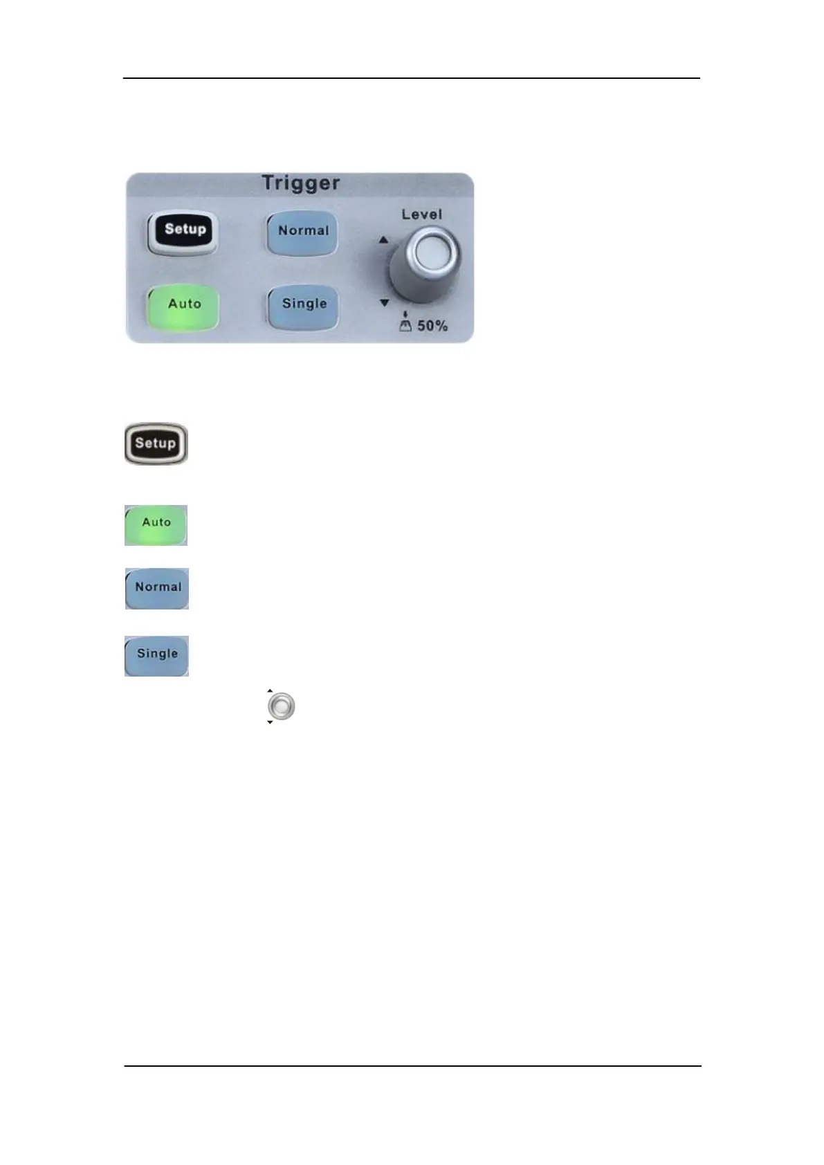 Trigger Level Knob: Sets the trigger level. Turn it clockwise or counterclockwise to