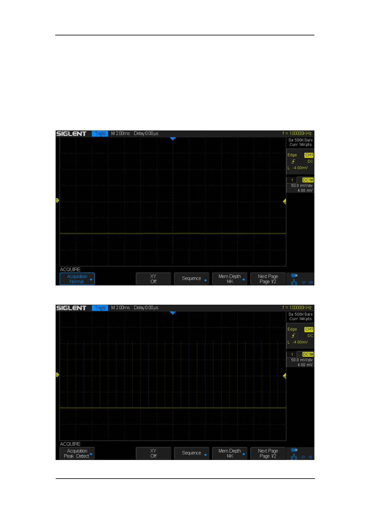 In this mode, the oscilloscope can display all the pulses with pulse widths as small as 1ns.