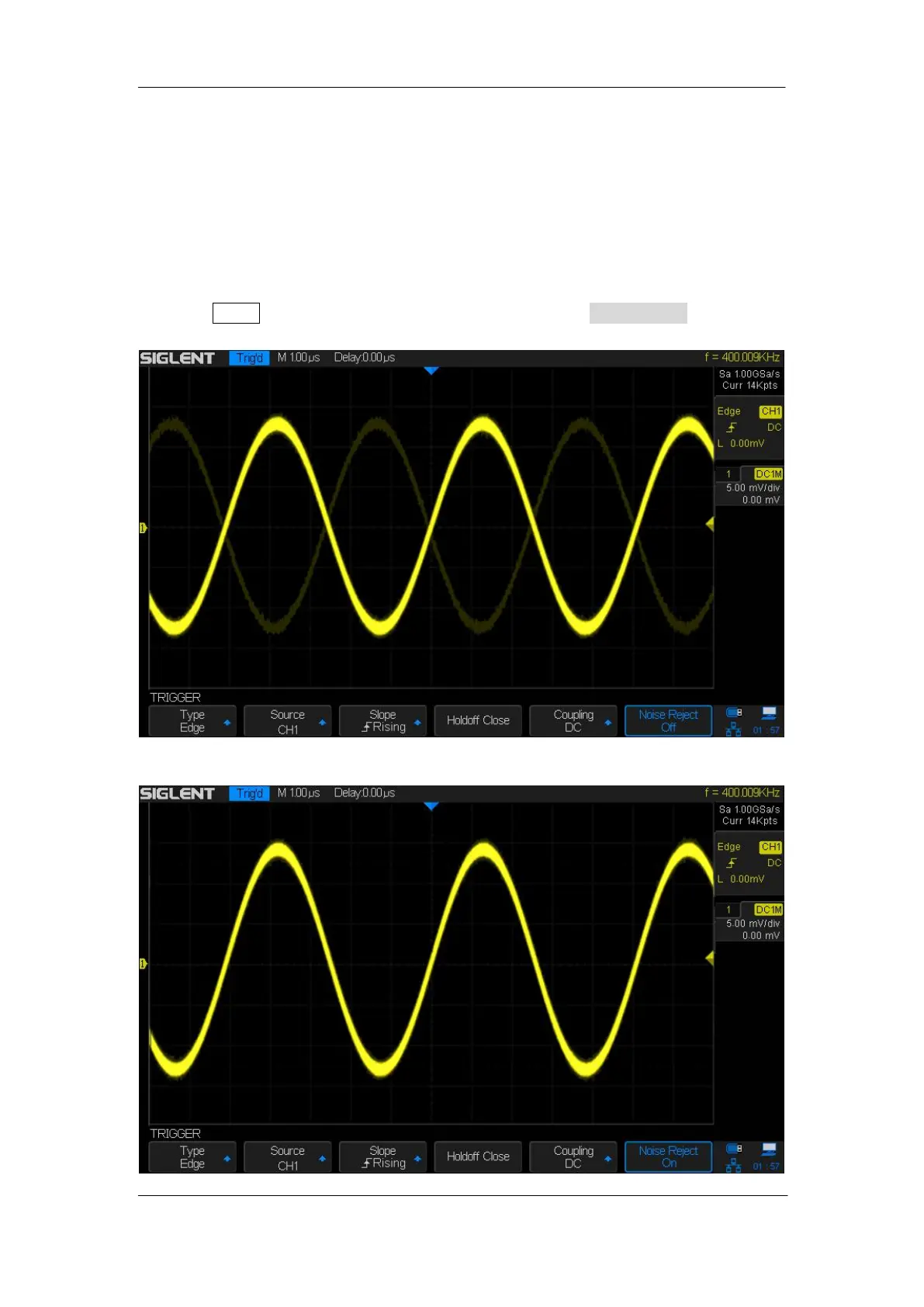 Noise Reject adds additional hysteresis to the trigger circuitry. By increasing the trigger