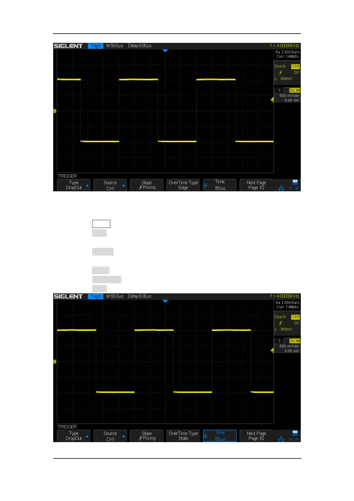 4. Press the Slope softkey to select rising or falling edge.