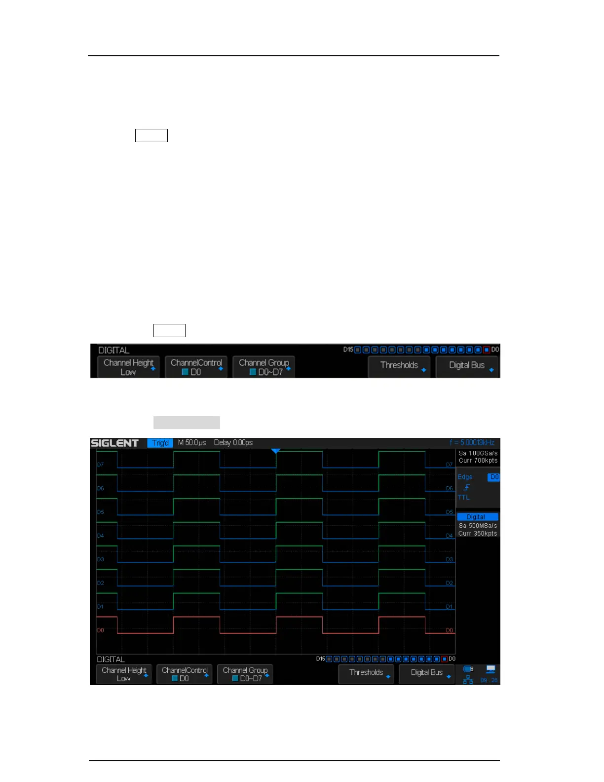 Press the Digital button on the front panel to open the digital channels and start acquiring