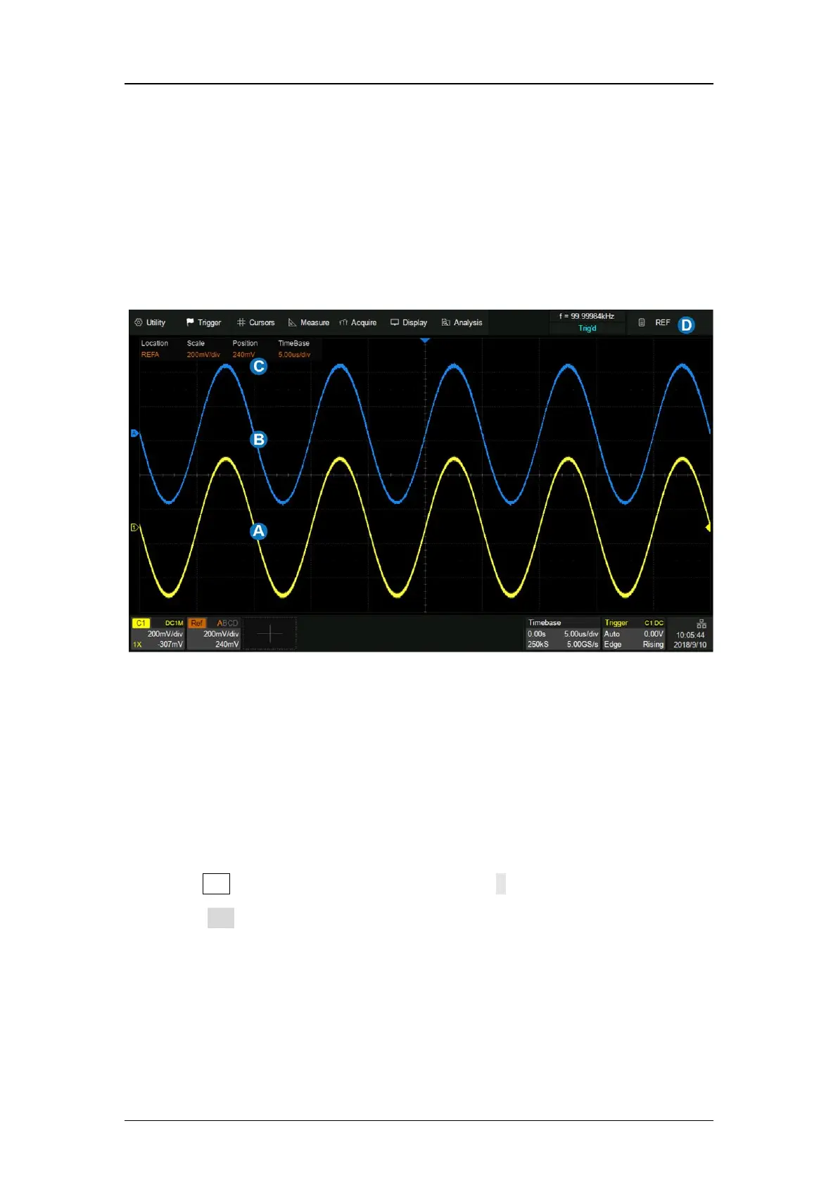 Data from analog channels or math can be saved to the reference locations