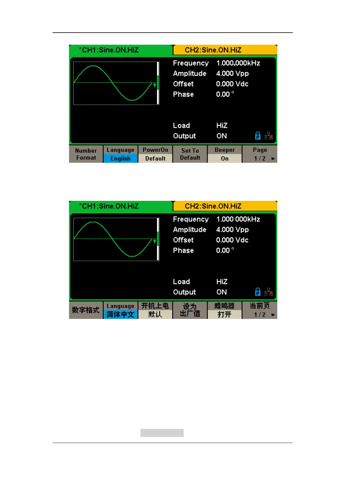 Choose the SDG2000X’s setting when the generator is powered on. Two