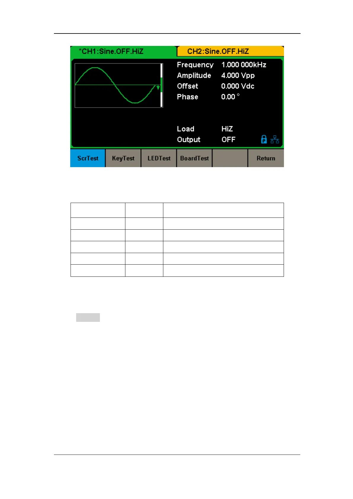 Table 2-34 Menu Explanations of Self Test