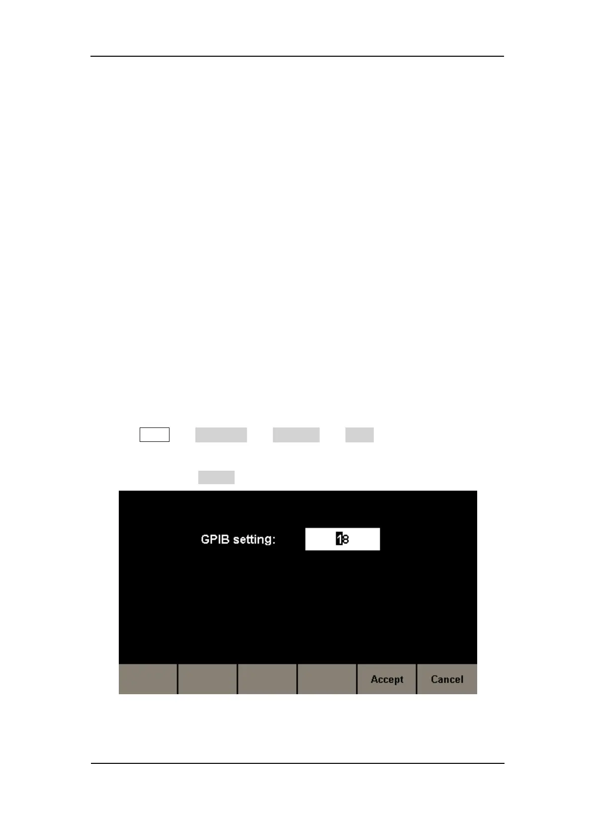 Choose Utility → Page 1/2 → Interface → GPIB to enter the following