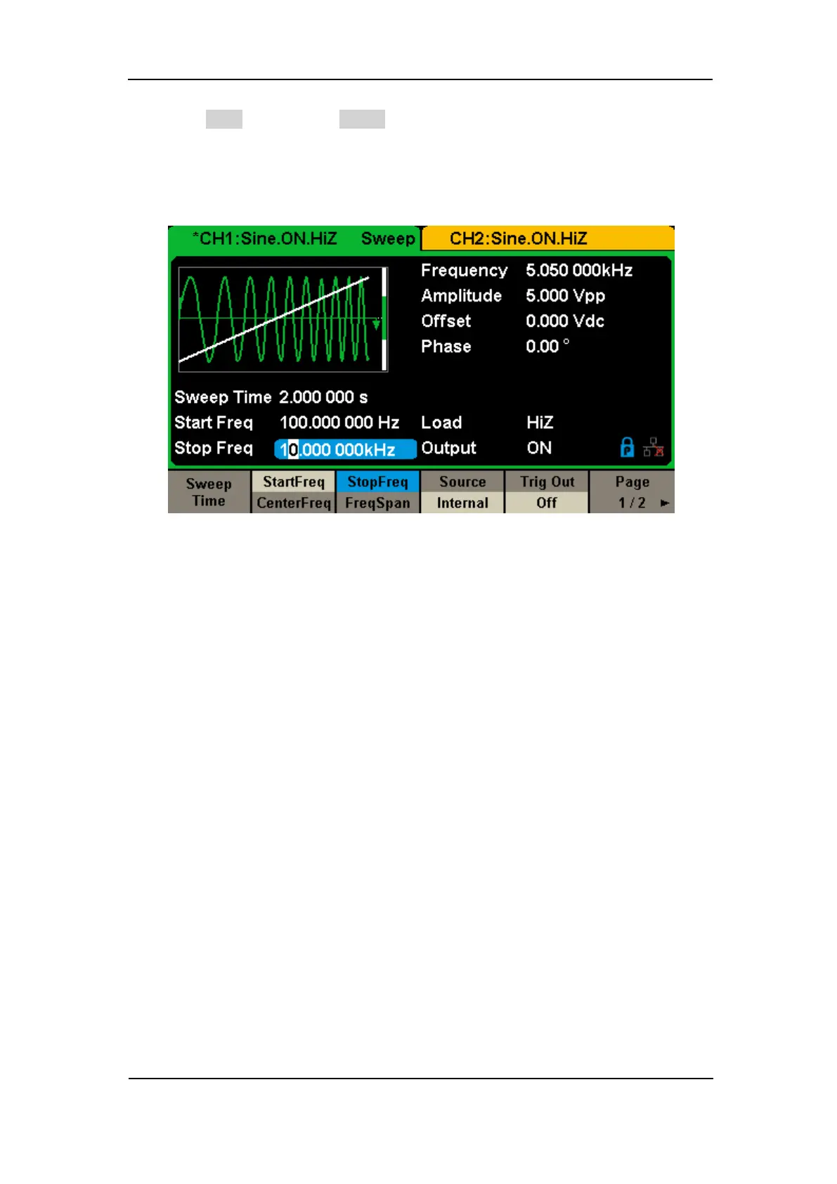 When all parameters above are set, the linear sweep waveform generated is
