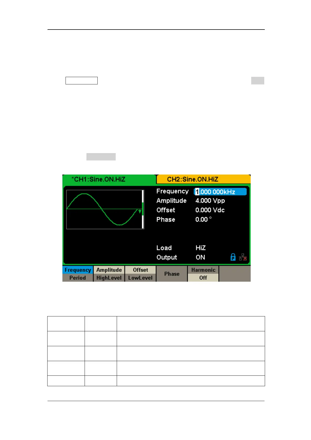 Table 2-1 Menu Explanations of Sine Waveform