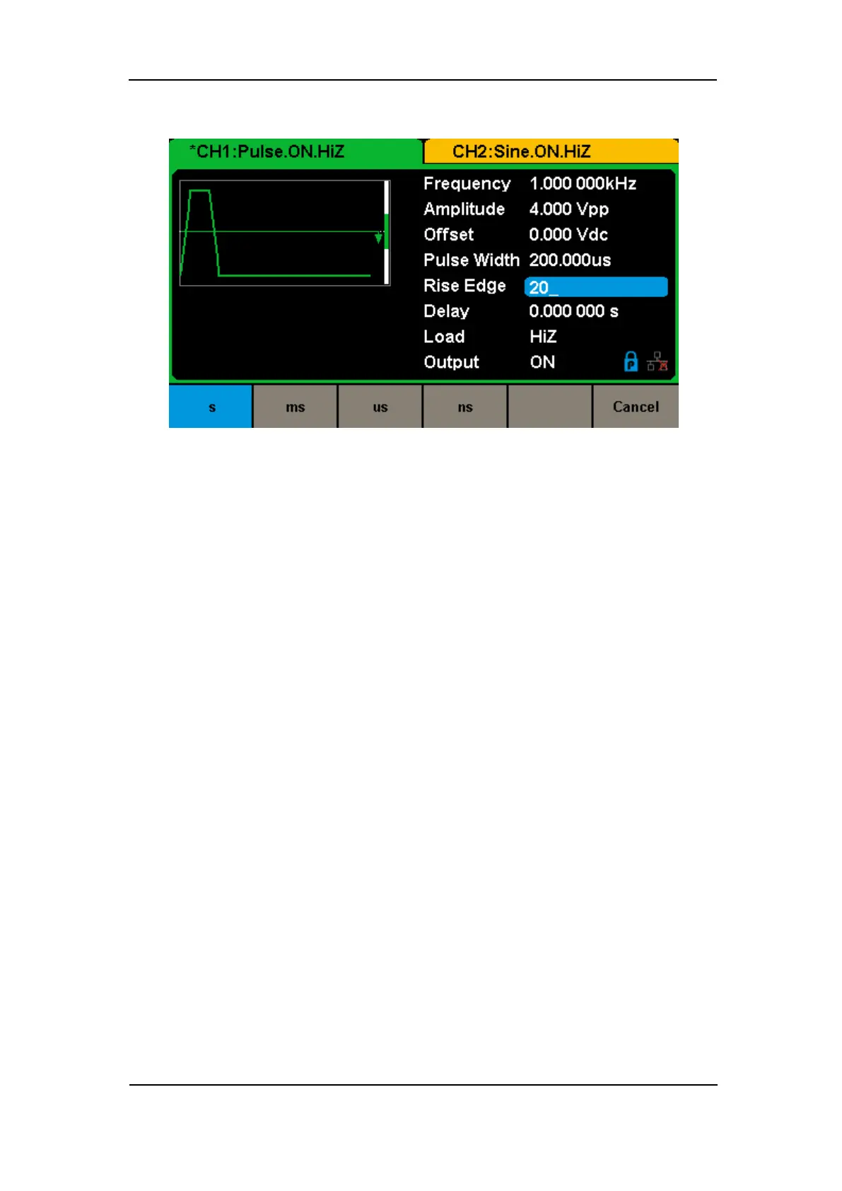 The methods of setting other parameters of pulse signal are similar to sine