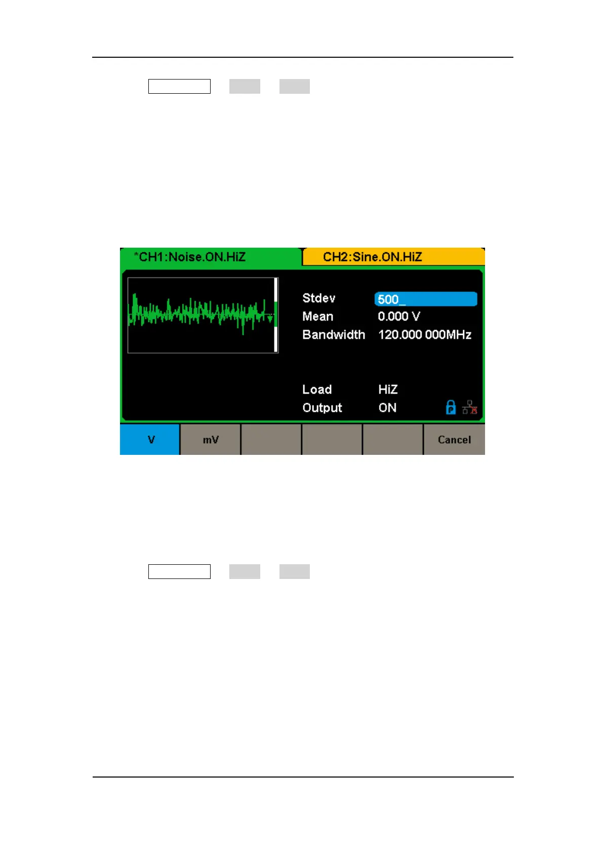 1. Press Waveforms → Noise → Mean, to set the mean.