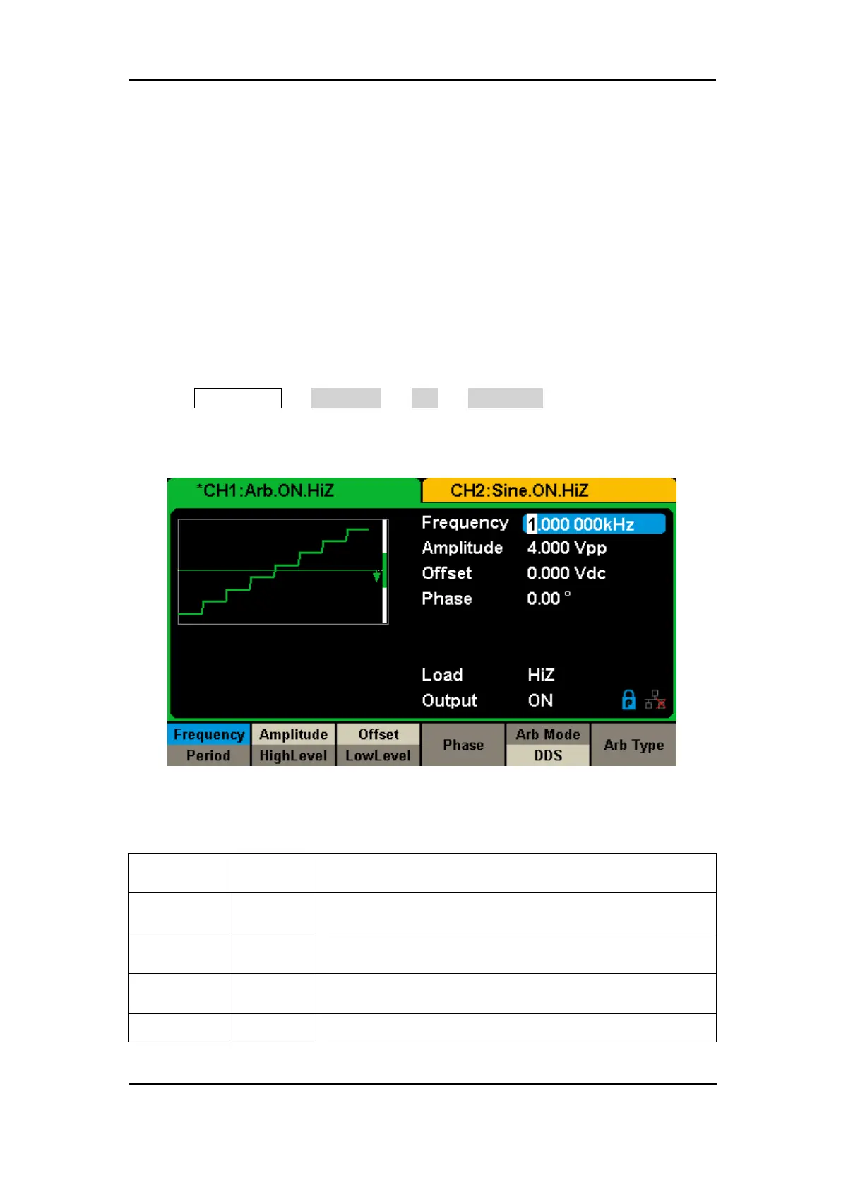 In DDS output mode, users can set the frequency or period of the arbitrary