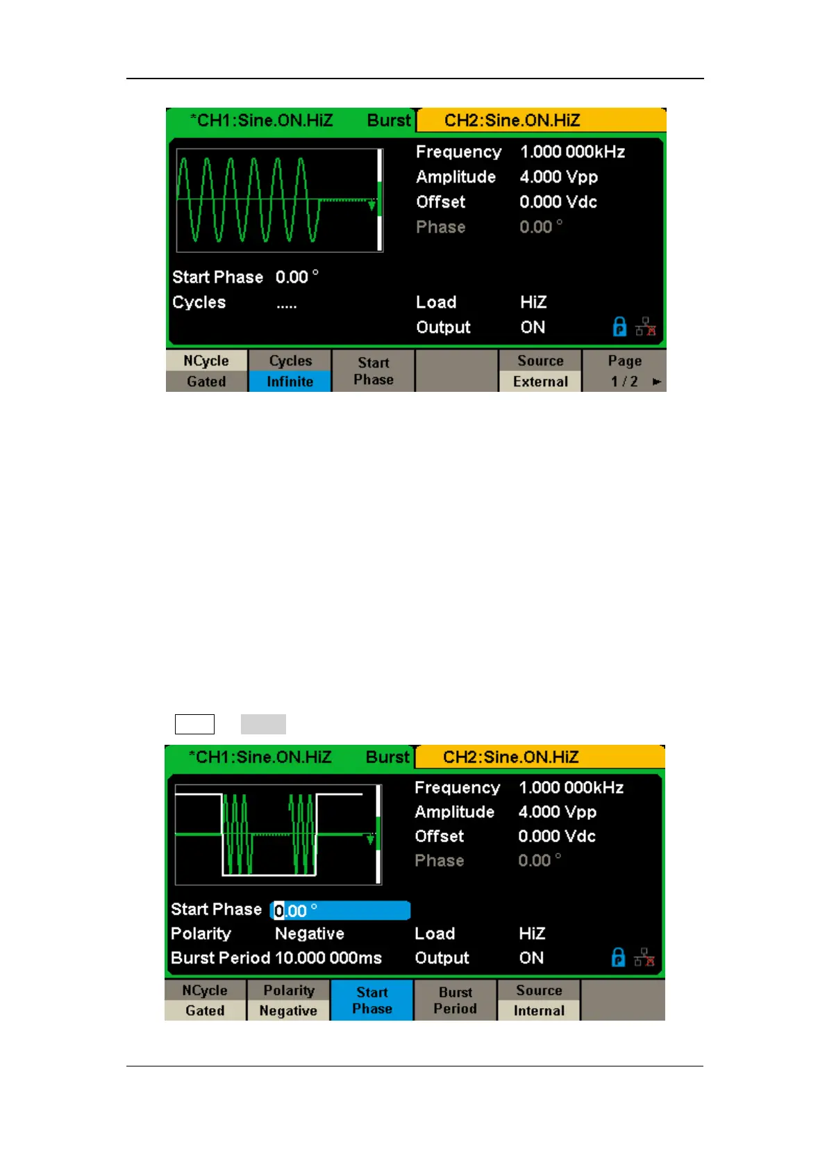 support gated burst include sine, square, ramp, pulse, noise and arbitrary.