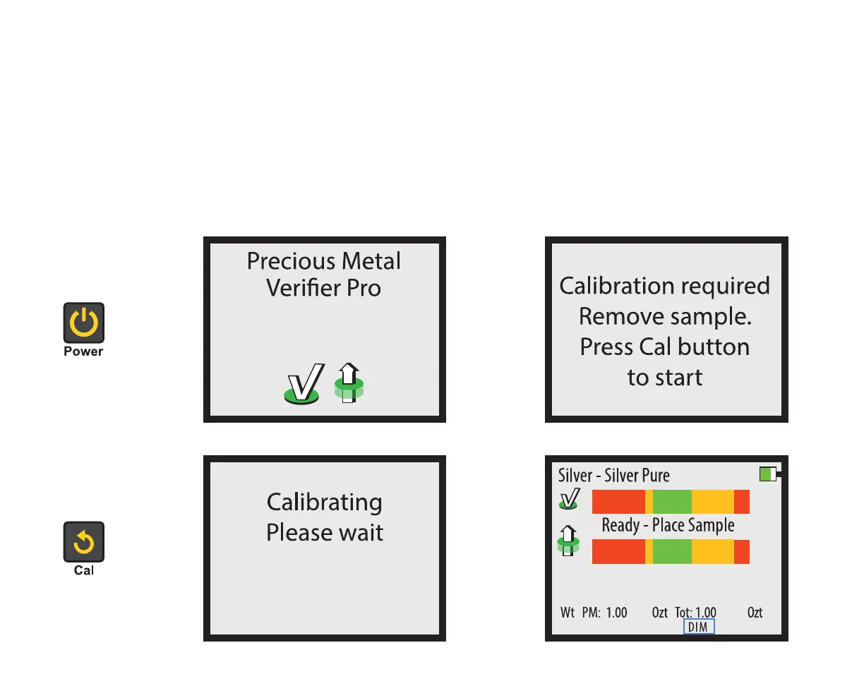 CAL button to calibrate. The device will check each sensor then show the READY screen.