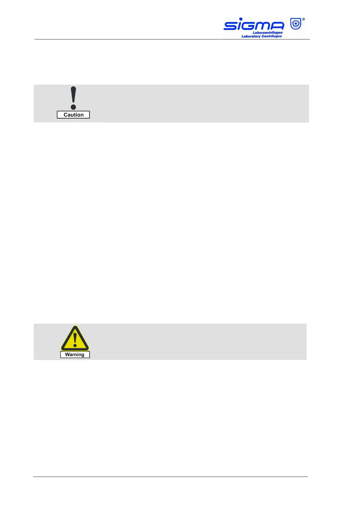 • Do not expose the centrifuge and rotors to intensive UV radiation
