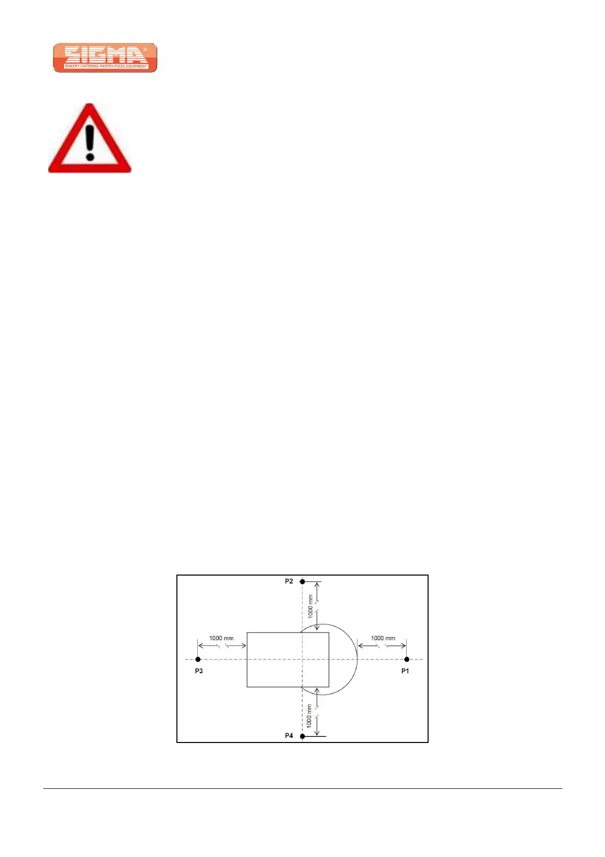 • -) microphone located at 1,6m from the ground and 1000 mm from the machine in the points indicated with P1 -