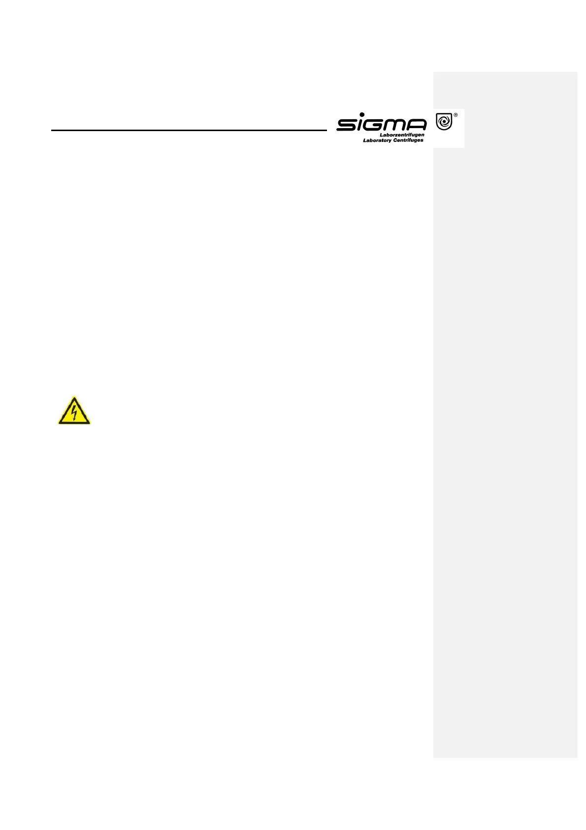SIGMA laboratory centrifuges are units of safety class I and have a three-wire