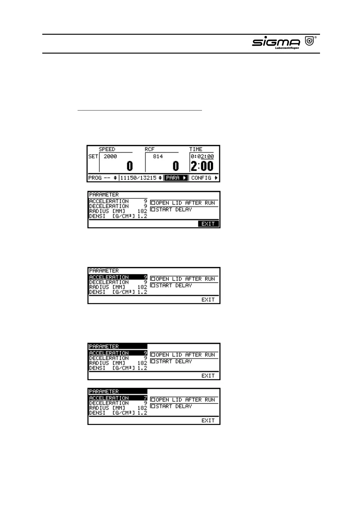 • Confirm the selected parameter by pressing the knob (here: acceleration). The