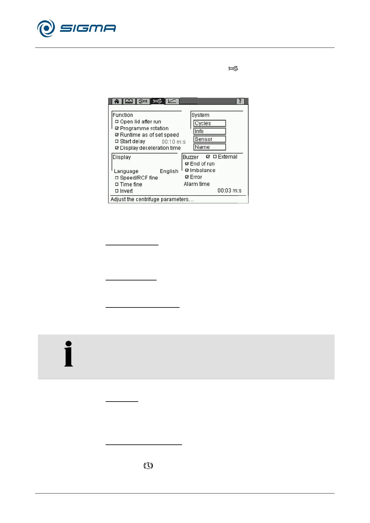 centrifuge. It enables the optimum adaptation of the centrifuge to its specific