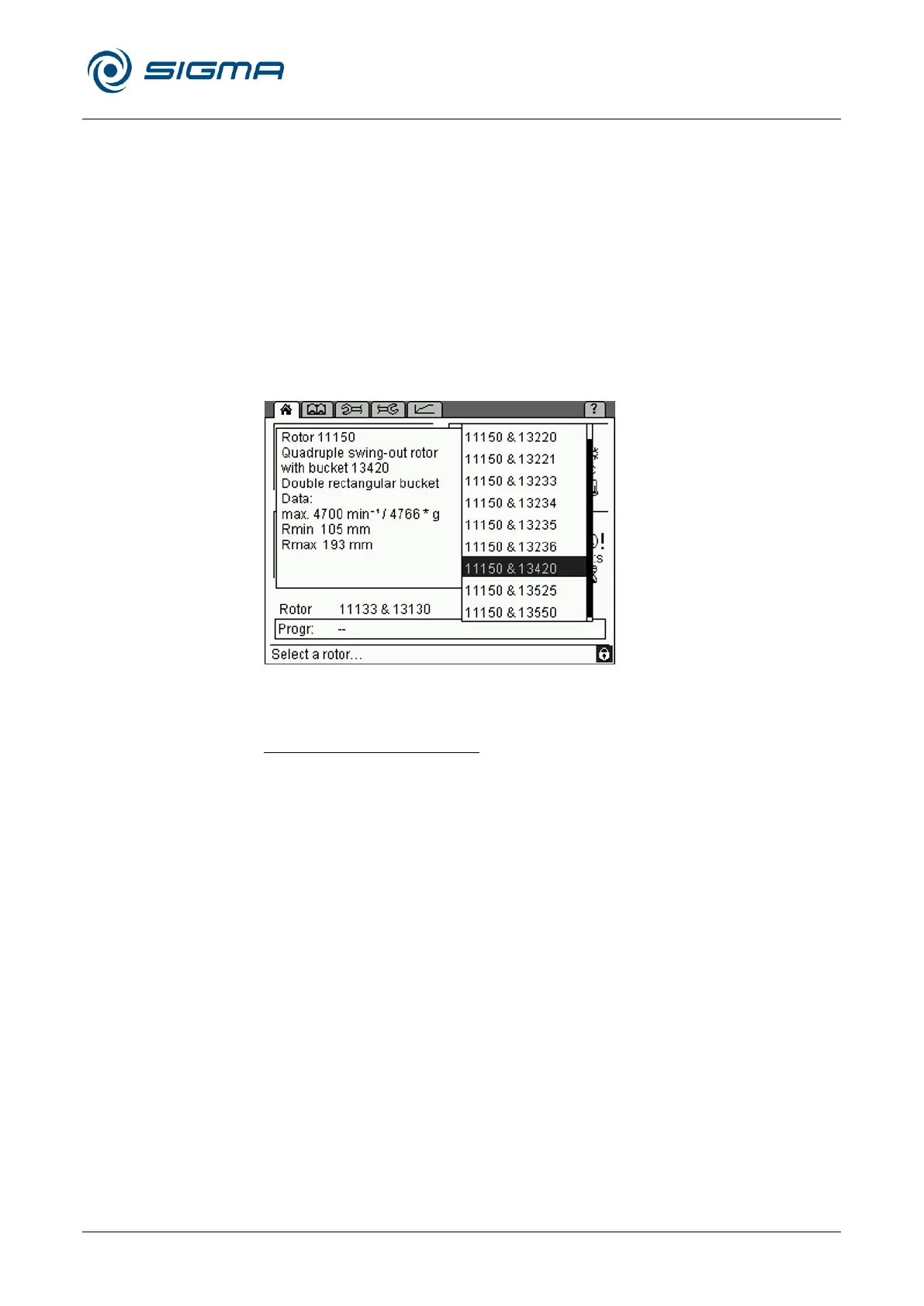 Fig. 25: Rotor selection list, here with potential rotor-bucket combinations