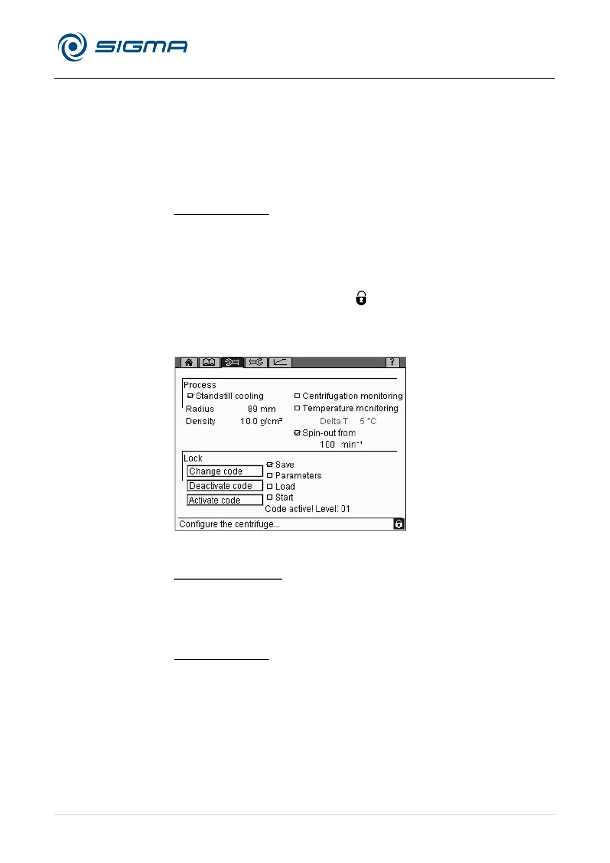 In order to prevent any unauthorised use of the centrifuge, the following