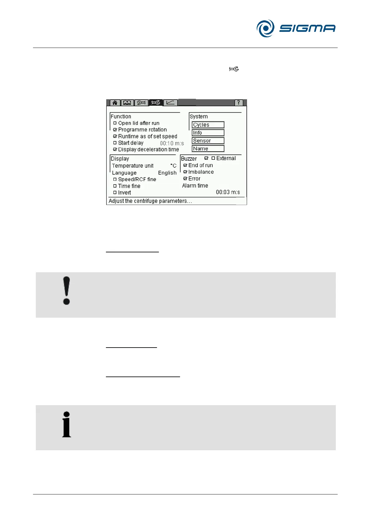 Pos: 161 /100 Sig ma/100 BA Ze ntrifugen Sig ma (Standardmo dule)/060 Betrieb _Spincontrol L+S/Spincontrol S (Z ent7)/060- 0030-0020-0 070 Menü S etup @ 27\mod _140532022547 9_68.docx @ 193361 @ 4 @ 1