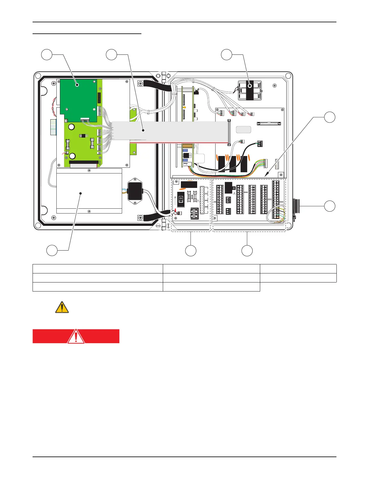 1. Base, CPU, and 4–20 mA Circuit Boards 4. Voltage Isolation Barrier 7. High voltage wiring