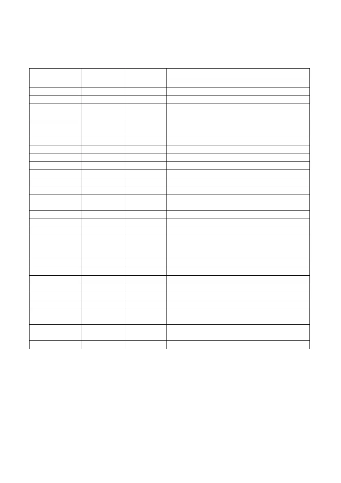 SPARE PARTS LIST TABLE: