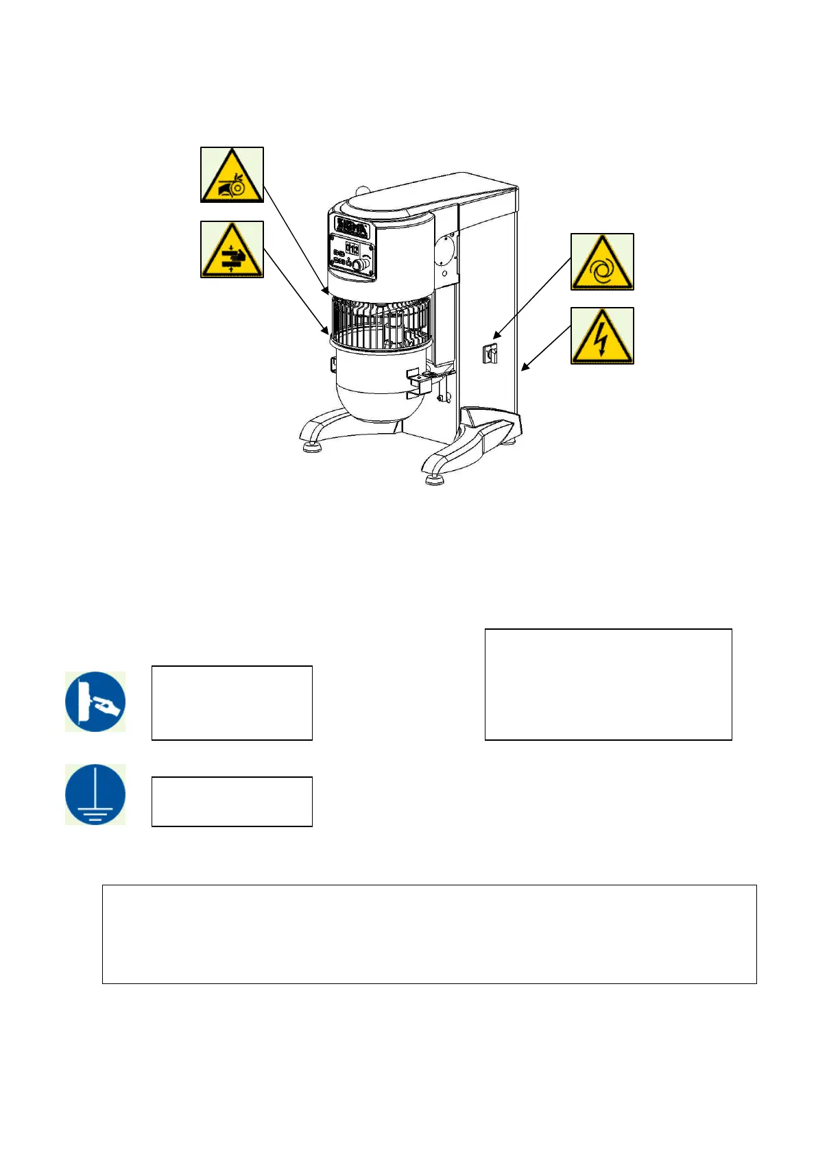 Before carrying out any manoeuvre beyond the protective grid, wait for the mixer to come to a complete stop.