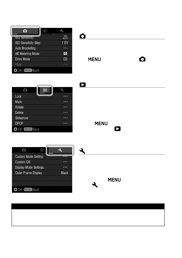 Depending on the settings of the camera, some menu items and setting