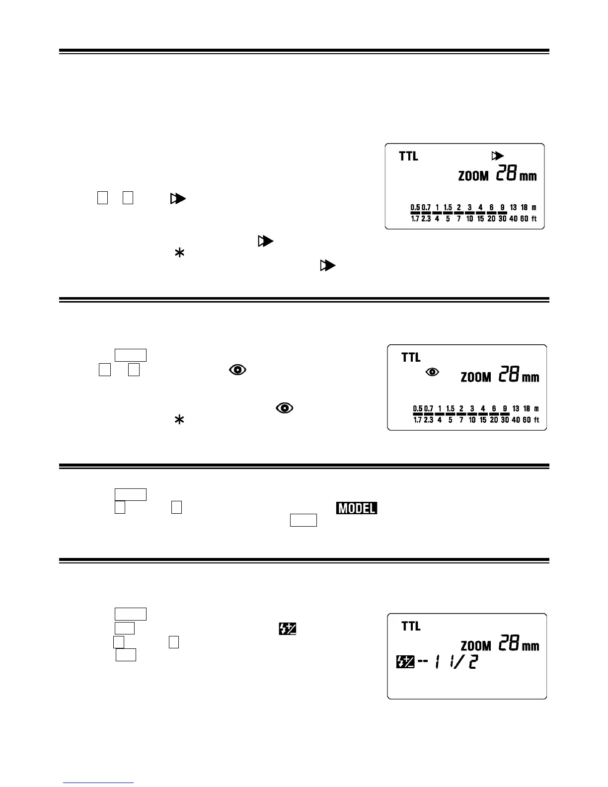 1. Press the MODE Select the mode of the flash(TTL, M modes)