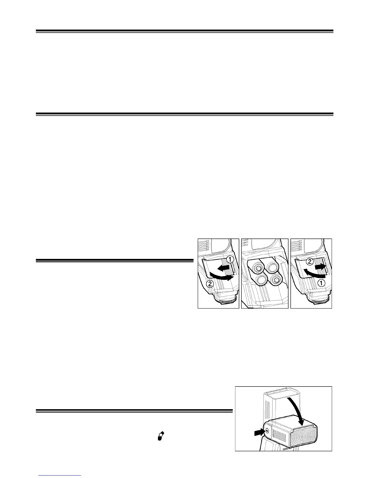 Dieses Blitzgerät benötigt vier „AA“ Alkaline Trockenbatterien oder wiederaufladbare Ni-Cad oder Ni-MH