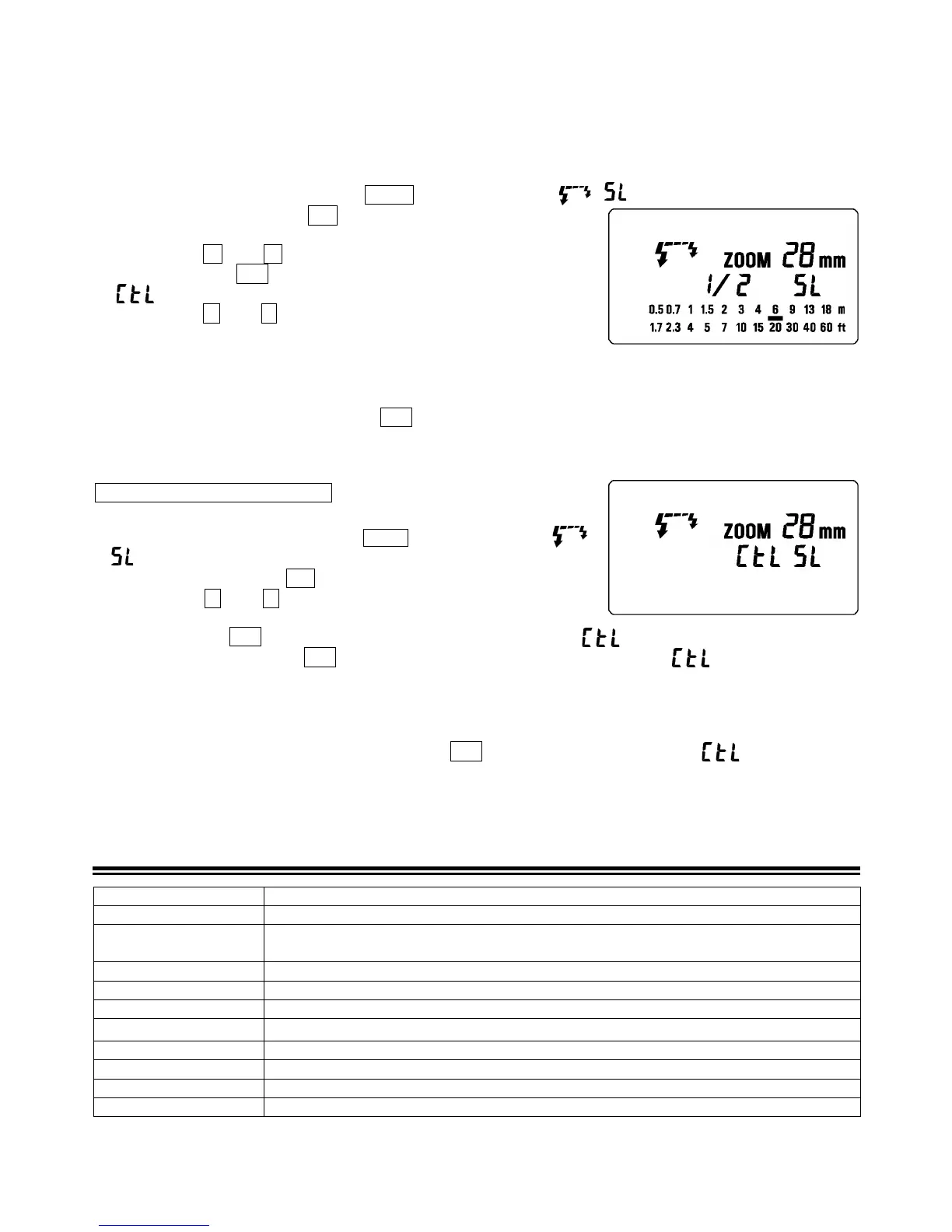 8. Drücken Sie die SEL Taste, sodass die Anzeige der Blitzleistung