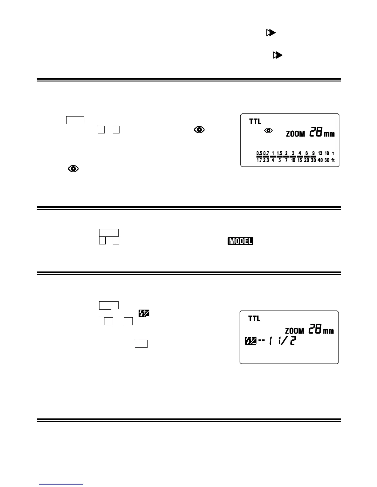 Premere MODE per impostare il modo di funzionamento del flash (TTL, M)