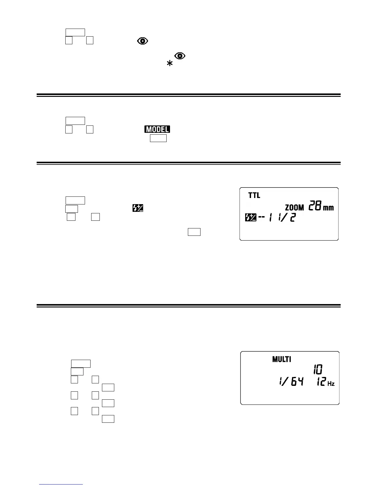 1. Tryk på MODE -knappen for at vælge flash-funktion (TTL, M funktion).